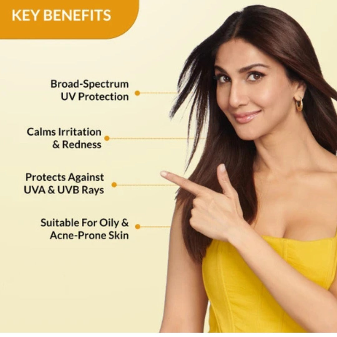 Powered with broad-spectrum UV filters, Vitamin C & E, and Hyaluronic Acid, this advanced formula protects against sun damage while visibly reducing tan, evening skin tone, and boosting hydration.